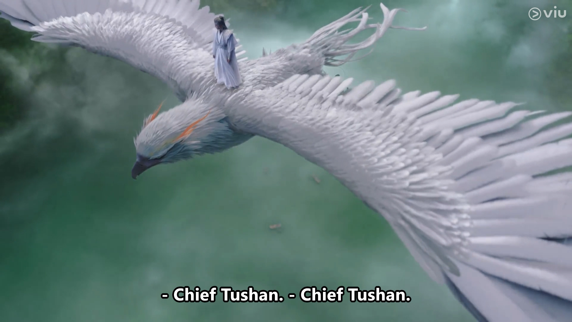 Xiaoliu looked up and saw a white eagle carrying Xiangliu, flying down from the full moon. Dressed in white with white hair, he descended from the skies like snow, gently landing beside Xiaoliu.