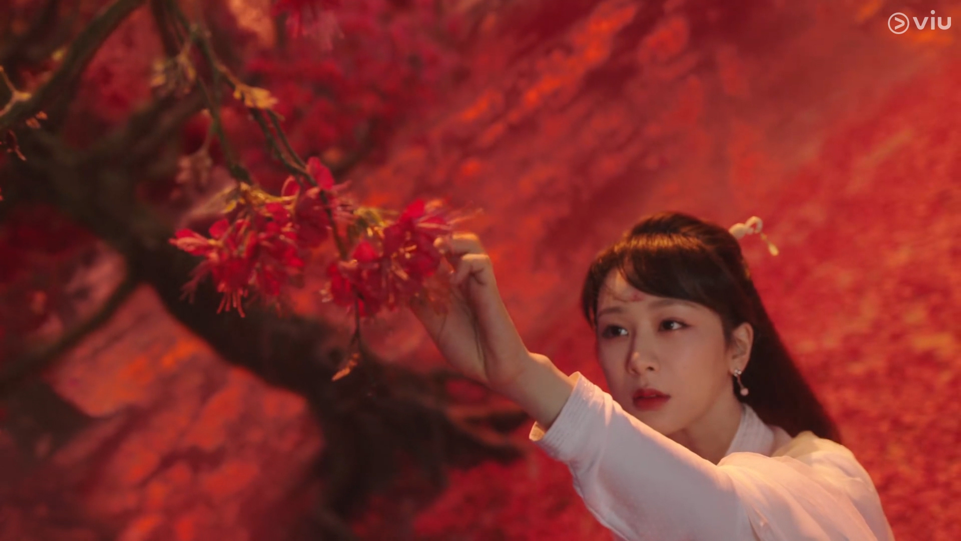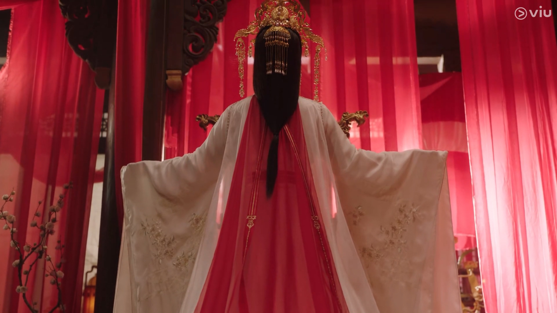 Jing looked at Xiao Yao, who was dressed for the occasion, with tears welling in his eyes: “Xiao Yao, I’m back. I hope you won’t hold my late return against me!” Jing moved toward Xiao Yao, but the maids on either side of the altar blocked him with peachwood staffs. Jing did not wish to anger the Queen Mother and had to stop. He softly called, “Xiao Yao, don’t become the Queen Mother. You promised to marry me!”