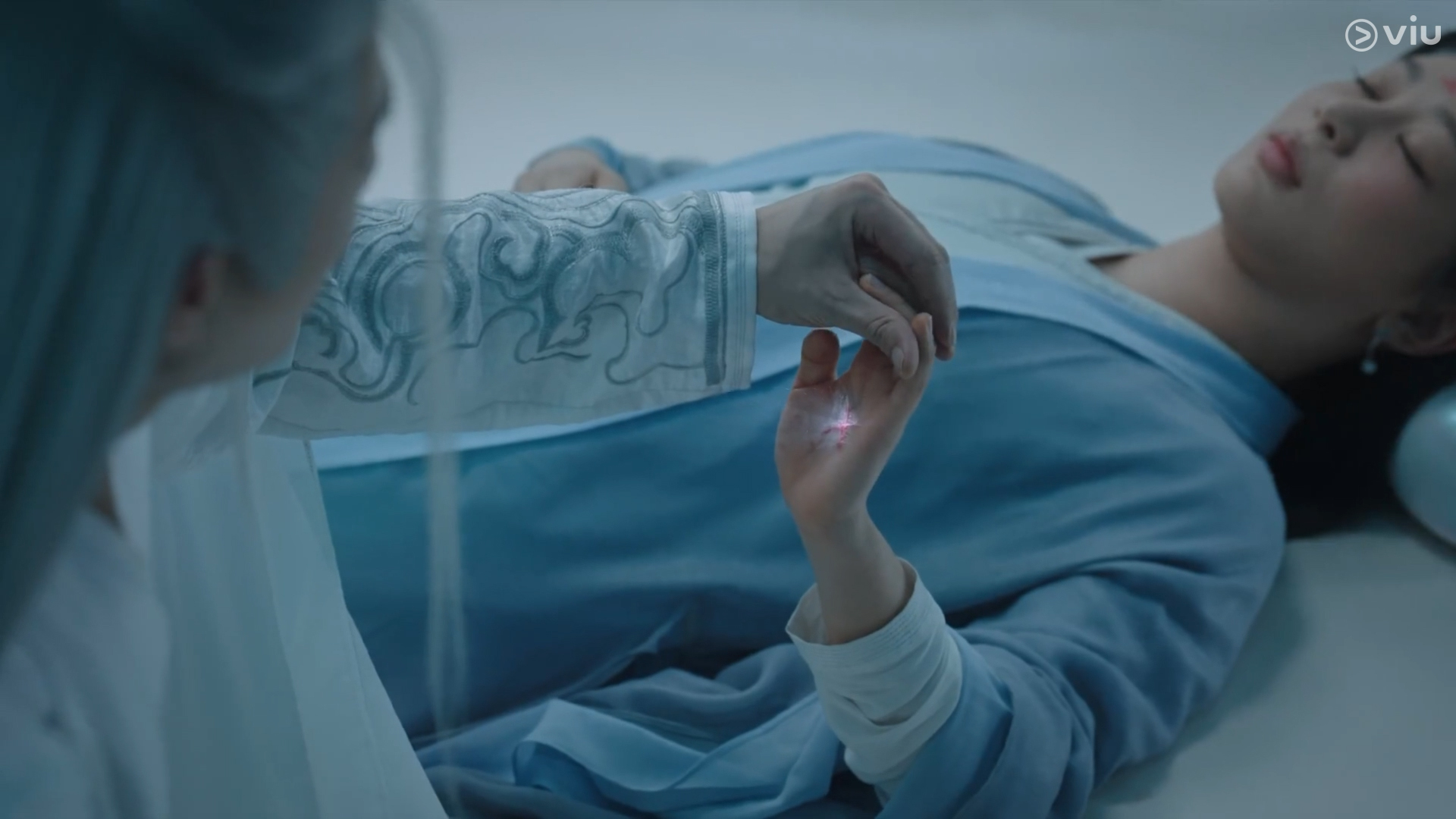 Jing looked down at the sleeping Xiaoyao, his fingers gently tracing the wounds on her face, and slowly outlining her features with his fingertips. He traced over and over, until even if he were to lose his sight, he would still be able to see her clearly.
