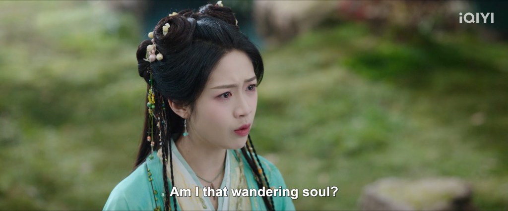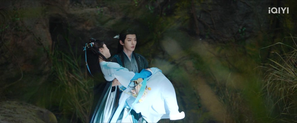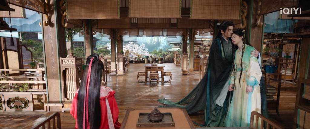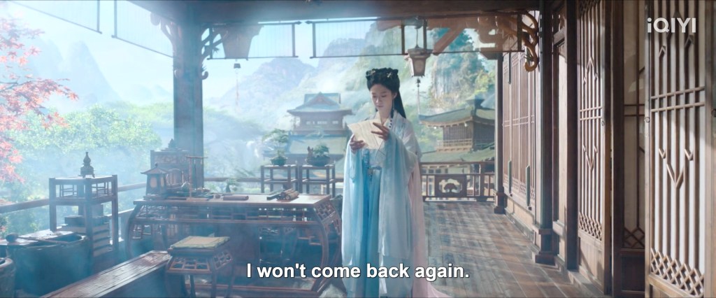 The scene where she was floating was supposed to be at the end when they were leaving, when Ranran was only able to fall down and not rise back up to the mortal realm and Su Yishui still ‘saved’ her even though he forgot who she was by then.