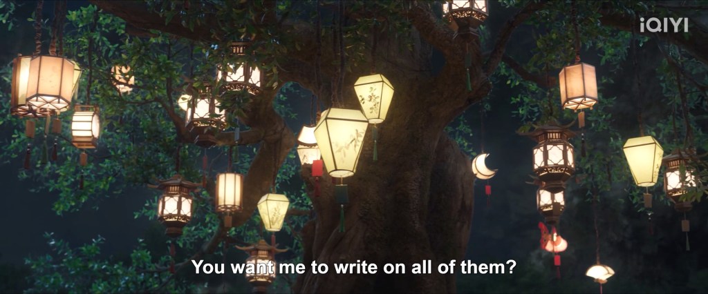 This was changed to their private celebratory lantern party, which was also a parallel to Mu Qingge’s gesture to Su Yishui in the drama.